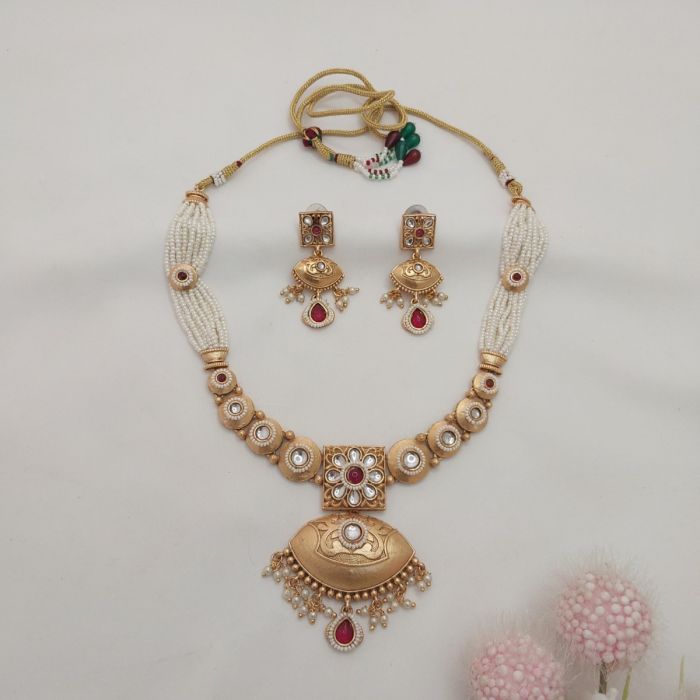 - Antique Gold Kundan Pearl Bridal Setwas ₹1,250.00 Special Price ₹1,000.00