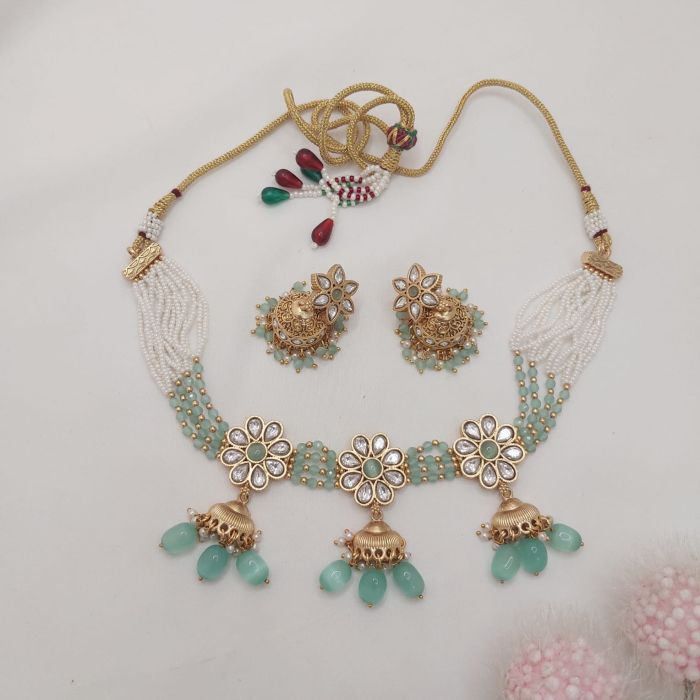 - Aqua Bloom Kundan Necklace Setwas ₹2,500.00 Special Price ₹2,000.00