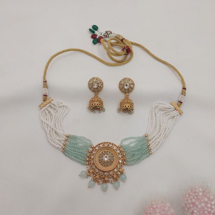 - Mint Kundan Pearl Choker Setwas ₹4,125.00 Special Price ₹3,300.00